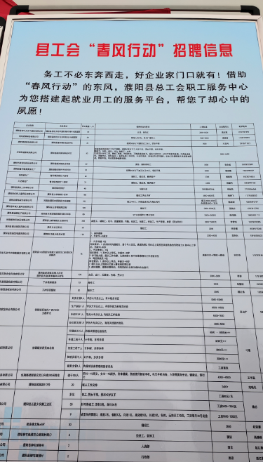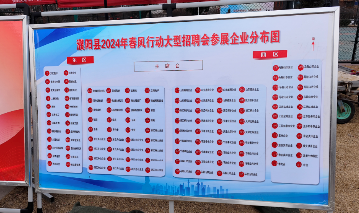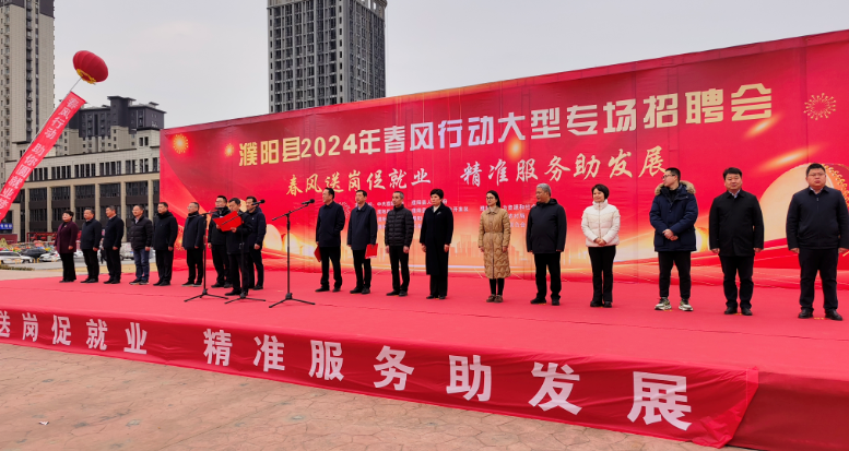 2024年2月19日,由中共濮阳县委、濮阳县人民政府主办,濮阳县总工会、濮阳县先进制造业开发区、濮阳县人力资源和社会保障局、濮阳县财政局、濮阳县交通运输局、濮阳县农业农村局、濮阳县卫健委、共青团濮阳县委、濮阳县妇女联合会承办的“濮阳县2024年春风行动大型专场招聘会”濮阳县红旗路东段上亿广场盛大开幕。